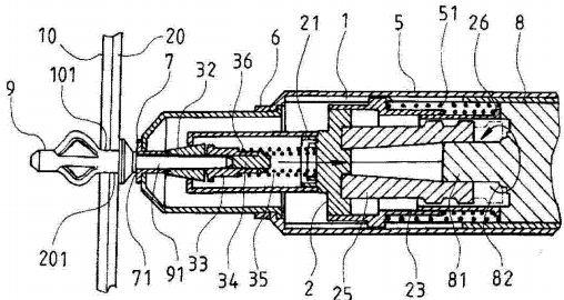 弹簧瞬间把推进器弹回原位,装置自动脱离工件。